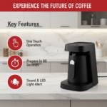 تمنحك ماكينة أرزوم أوكا مينيو جيت فنجان قهوة تركية مثاليًا خلال ٨٠ ثانية فقط، لتستمتع بتجربة سريعة وسهلة في كل مرة. ابدأ يومك بتحضير قهوتك التركية المفضلة بلمسة زر واحدة، بفضل نظام التشغيل البسيط الذي يجعل استخدامها مريحًا وسهلًا للجميع. فازت أرزوم أوكا مينيو جيت بجائزة PLUS X الألمانية لعام ٢٠٢١ تقديرًا لتصميمها المبتكر ووظائفها الفائقة. كما أن تصميمها المدمج الموفر للمساحة يجعلها مناسبة لأي مطبخ أو ركن قهوة منزلي، لتضيف لمسة من الأناقة والعملية في آن واحد.
