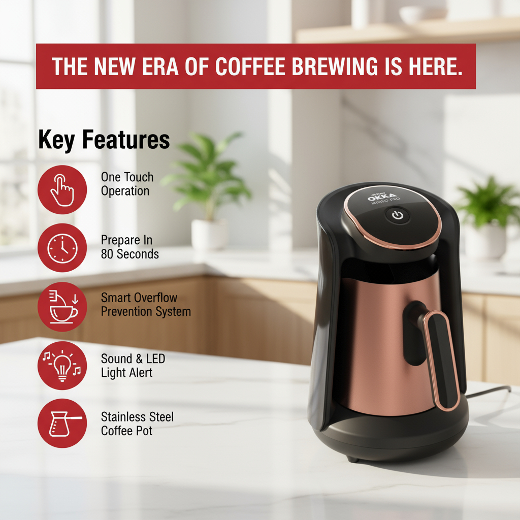 ماكينة تحضير القهوة التركية أوكا مينيو برو من أرزوم - أسود، نحاسي