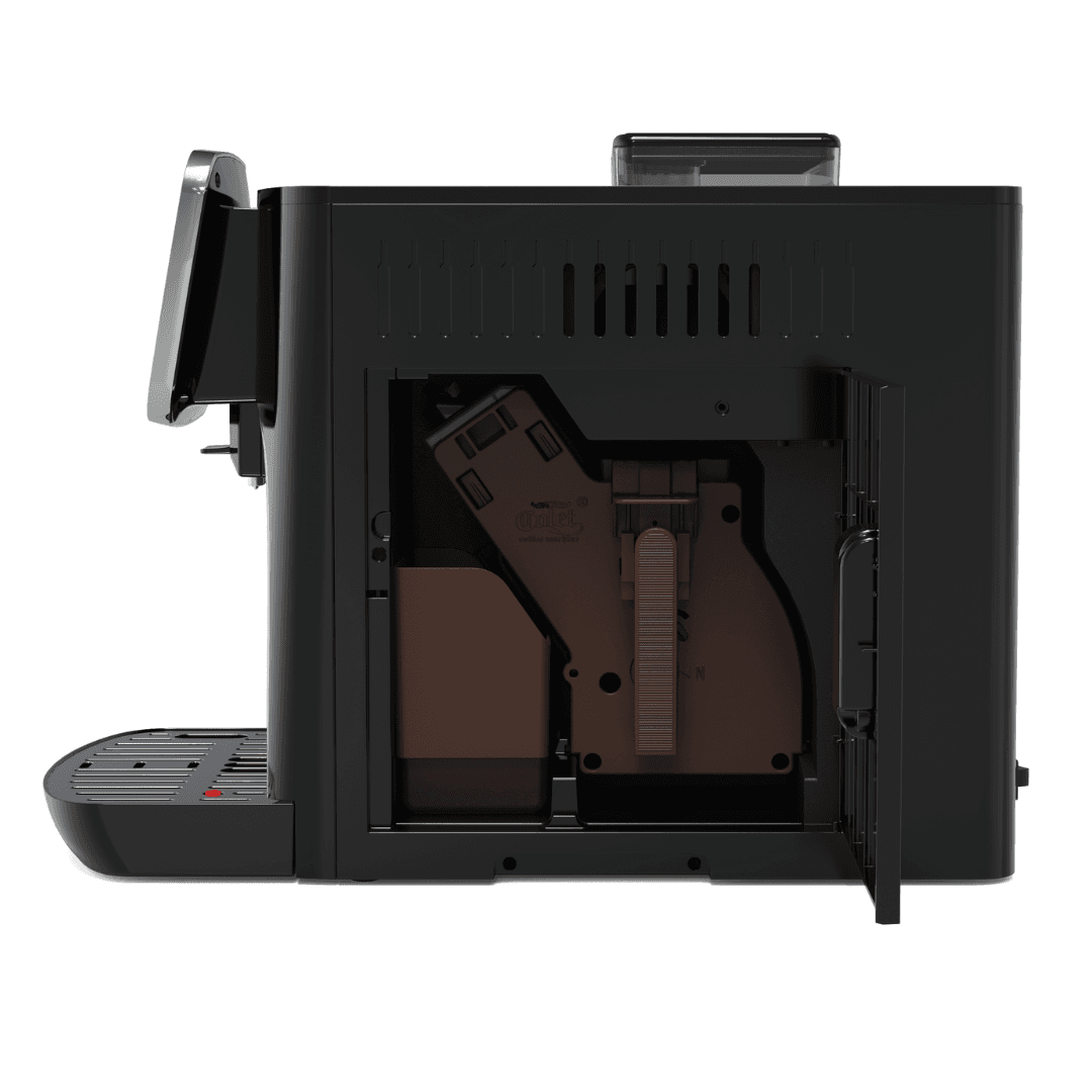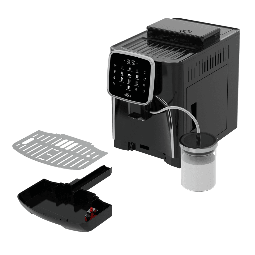صُممت هذه الآلة بهيكل أسود أنيق ولمسة نهائية لامعة من الكروم، لتضفي لمسة من الأناقة على أي مطبخ أو ركن قهوة مع تجسيد تصميم OKKA المميز. لا تقتصر جماليتها المعاصرة على تحسين مظهر مساحتك فحسب، بل ترتقي أيضًا بتجربة القهوة بشكل عام.