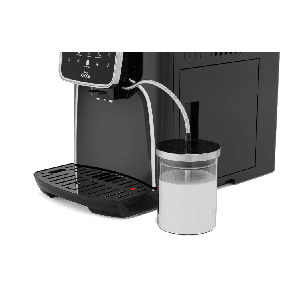 تم تصميم هذه الماكينة بهيكل أسود أنيق ولمسة نهائية لامعة من الكروم، لتضفي لمسة من الأناقة على أي مطبخ أو ركن قهوة مع تجسيد تصميم OKKA المميز.