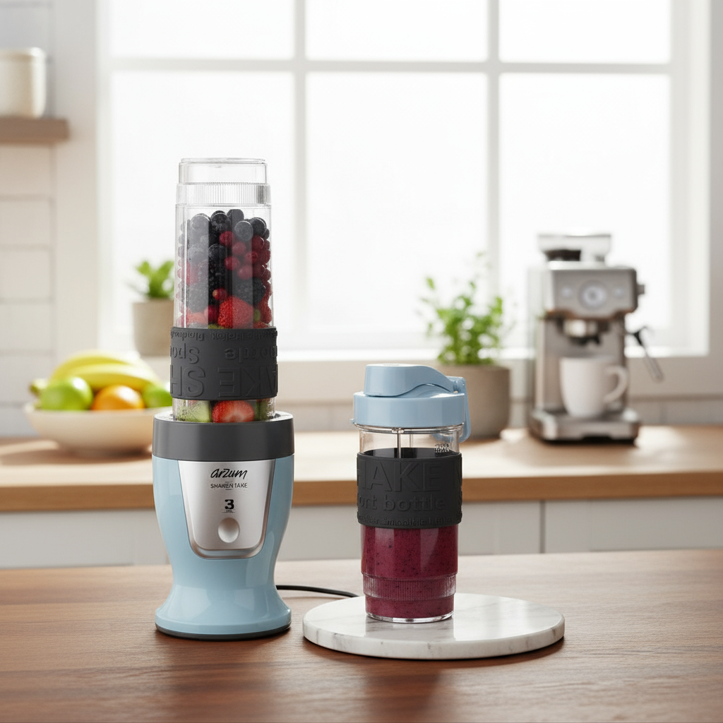 خلاط أرزوم شِيك أند تيك — ثورة حقيقية في عالم الخلاطات. بضغطة زر واحدة بس، تقدر تحضّر عصايرك المفضلة، أو مشروب الطاقة بعد التمرين، أو أي مشروب مُنعش بكل سهولة. الخلاط مزود بشفرات ستانلس ستيل قوية ومسنّنة قادرة على تكسير التلج بسهولة، علشان يقدّم لك مشروبات ناعمه ومتجانسة في ثواني. بتصميم ذكي مع غطا للشرب ومضاد للتسريب في نفس الوقت، علشان تستمتع بمشروبك في أي وقت ومن غير قلق.