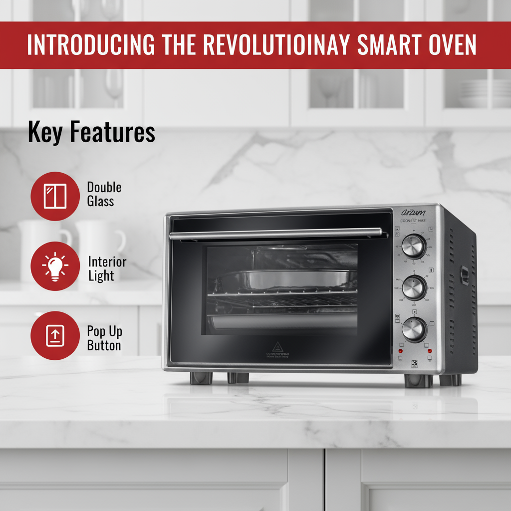Experience high-performance cooking with the Arzum Cookart Maxi, a 50-liter double-glass oven designed for convenience, efficiency, and versatility. Whether you’re baking, grilling, or roasting, this oven ensures even heat distribution with its turbo fan feature, while its double glass door enhances insulation for energy efficiency. Ideal for home kitchens, this oven brings professional-quality cooking to your fingertips.