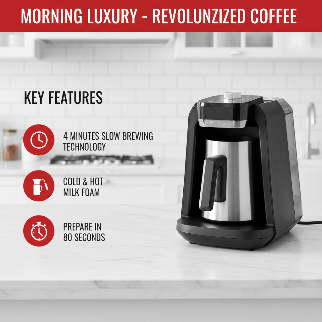 Introducing the latest version of the Arzum OKKA Rich Pro, a true revolution in coffee-making that combines cutting-edge technology with a sleek, modern design. This new version features an integrated 1.3-liter removable water tank.