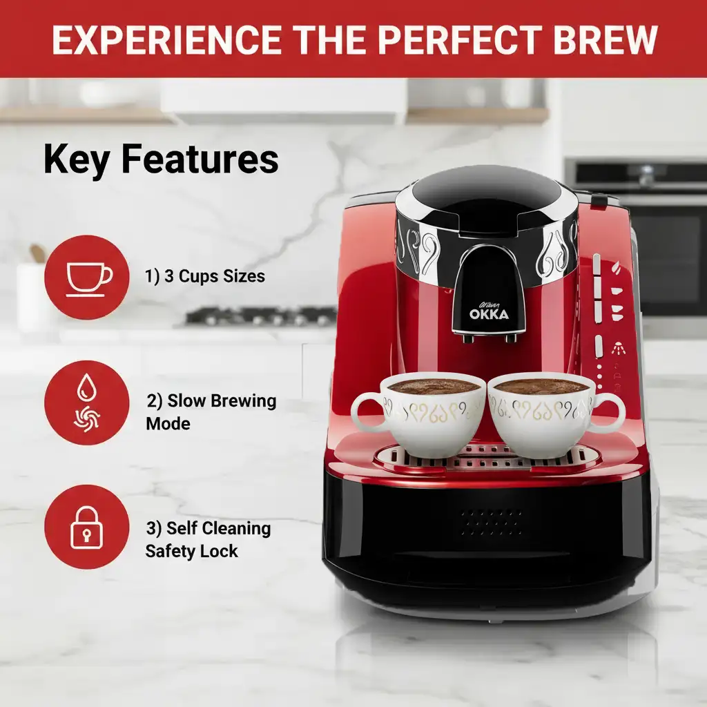 Arzum OKKA Automatic Turkish Coffee Machine – Red, Chrome